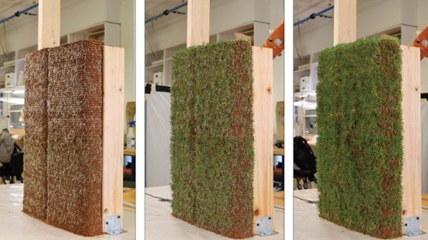 圖片7:3D打印的“生命墻”顯示144小時后植被的生長情況(照片來源:弗吉尼亞大學(xué))