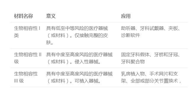 等級(jí)劃分基于設(shè)備的風(fēng)險(xiǎn),而ISO 10993則基于與身體組織和體液的接觸時(shí)間和接觸類型,這在選擇設(shè)備材料時(shí)是最重要的因素。