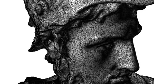林肯保護(hù)組織掃描的阿賈克斯半身像的線框網(wǎng)格,該組織使用3D掃描技術(shù)精確地?cái)?shù)字化文物和建筑特征的表面幾何形狀(來源:林肯保護(hù)組織)
