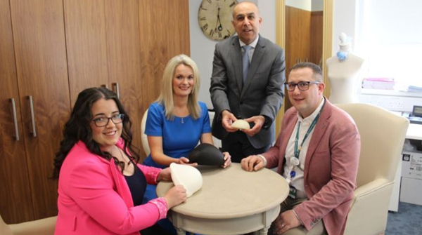 UL項目背后的團隊(從左到右):Emmajude Lyons,利默里克大學(xué)快速創(chuàng)新部門博士研究員;Lorraine Walsh博士,Mater Limerick Private Network放射腫瘤學(xué)顧問;Chwanrow Baban先生,利默里克大學(xué)醫(yī)院癥狀乳腺科普通乳腺和腫瘤整形外科顧問;以及快速創(chuàng)新部門首席研究員Kevin J O'Sullivan博士(圖片來源:利默里克大學(xué))。
