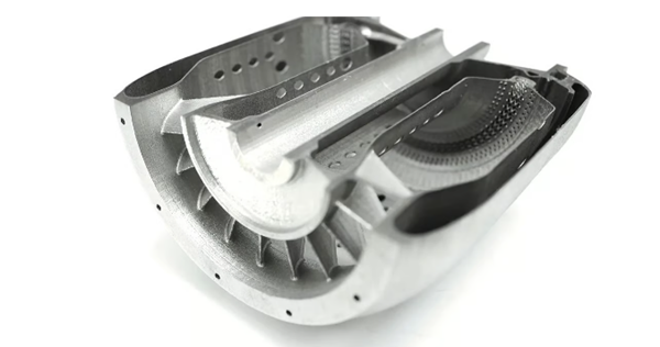 5:Sierra Turbines的3D打印微型渦輪燃燒器的橫截面展示了其復(fù)雜的內(nèi)部設(shè)計,取代了傳統(tǒng)制造所需的61個分立部件(來源:Velo3D)