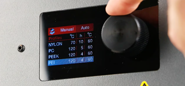 但是如果你使用長絲烘干機,比如PolyMaker的PolyDry,情況會怎樣?該機器不讓你設置溫度,而是有“功率等級”。PolyMaker建議在功率等級三下烘干任何PC長絲,據稱該等級低于70°C,持續(xù)六小時。但這比Bambu Lab建議的溫度要低,時間也短。