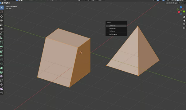 3、選擇一個頂點,然后按住Shift并選擇另一個頂點。按“M”鍵使用合并功能,然后從可用選項中選擇您想要如何合并頂點。