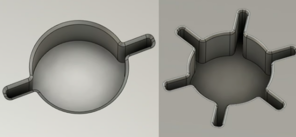 上圖是設(shè)計(jì)示例。左側(cè)的設(shè)計(jì)顯示更安全、更不柔順的貼合,而右側(cè)的設(shè)計(jì)顯示更靈活、更柔順的貼合。您可以隨意嘗試其他鰭片樣式以獲得柔順的孔以獲得所需的結(jié)果。
