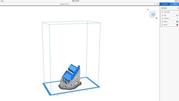如前所述,Z-Suite是一個(gè)直觀的界面,允許用戶輕松配置其模型。盡管該軟件技術(shù)強(qiáng)大,但其設(shè)計(jì)初衷是讓3D打印初學(xué)者也能輕松上手。其最顯著的功能之一是自動(dòng)生成支撐結(jié)構(gòu)的能力。還可以手動(dòng)調(diào)整這些支撐,從而更好地控制打印過程,并有助于避免常見問題,例如材料過多或重要區(qū)域缺少支撐。