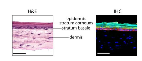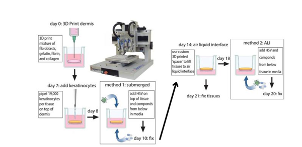 美國(guó)國(guó)家轉(zhuǎn)化科學(xué)促進(jìn)中心朱實(shí)驗(yàn)室的Ian Hayman和Ferrer實(shí)驗(yàn)室的Tori Ellison專(zhuān)門(mén)研究3D打印生物制造,他們進(jìn)行了一項(xiàng)研究,設(shè)計(jì)了3D生物打印的“人體皮膚等效物”。這些模型以針對(duì)抗病毒篩選和臨床前測(cè)試優(yōu)化的形式忠實(shí)地再現(xiàn)了人體皮膚的結(jié)構(gòu)。