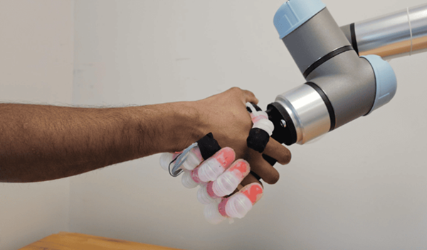 這種先進的假肢采用鉸接手指系統(tǒng),結合了柔性材料和剛性的3D打印內(nèi)部骨架。它集成了多個觸覺傳感器,模仿人類皮膚的感覺,使用戶不僅可以抓住物體,還可以感知其形狀和紋理。手指配有靈活的充氣關節(jié),由前臂的肌肉控制,從而提供極高的精度。此外,機器學習算法處理傳感器信息,重現(xiàn)接近人手的觸覺體驗。“我們結合剛性機器人和軟機器人的優(yōu)勢來模仿人手,”Sriramana Sankar解釋道。“人手既不是完全剛性的,也不是純粹靈活的:它是一個混合系統(tǒng),有骨骼、靈活的關節(jié)和組織協(xié)同工作。這就是我們想要通過假手實現(xiàn)的目標。”