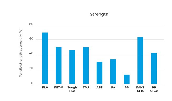一些常見材料(如ABS、PLA和PETG)的拉伸強(qiáng)度。(圖片來源:BCN3D)
