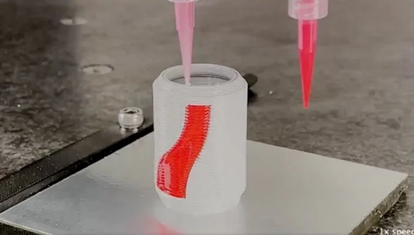 因此,由Jochen Mueller教授領(lǐng)導(dǎo)的研究人員開發(fā)了一種帶有兩個(gè)罐的擠壓系統(tǒng):第一個(gè)罐用于逐層沉積所需的材料,類似于FDM 3D打印機(jī)。然后,第二個(gè)允許您使用另一種材料填充創(chuàng)建的模型。此填充步驟可用于一層、幾層或所有層。