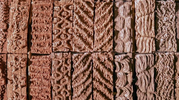 在這個(gè)項(xiàng)目中,Lola Ben-Alon將人工智能輔助設(shè)計(jì)與傳統(tǒng)材料相結(jié)合。項(xiàng)目名稱源于其創(chuàng)作過(guò)程:各種天然材料的紋理被隱喻性地轉(zhuǎn)化為代碼。3D打印的瓷磚由建筑廢料和農(nóng)業(yè)副產(chǎn)品制成,靈感源自各種傳統(tǒng)建筑形式,例如編織和籃筐編織。該裝置旨在引發(fā)反思,并探討諸如剝削、殖民主義和氣候危機(jī)等問(wèn)題。傳統(tǒng)土基建筑蘊(yùn)含的深厚歷史和人類智慧,通過(guò)尊重“土基儀式”及其原生材料,為應(yīng)對(duì)現(xiàn)代危機(jī)提供了解決方案。