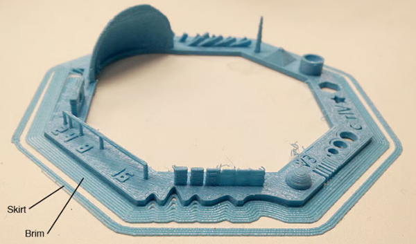 在切片機中創(chuàng)建邊緣或裙邊:裙邊是指從部件邊緣偏移的周邊,而帽檐是指附加在底座邊緣的一層或幾層額外輪廓。這可以使您的模型底座更寬,從而增強其在構(gòu)建表面上的抓握力。