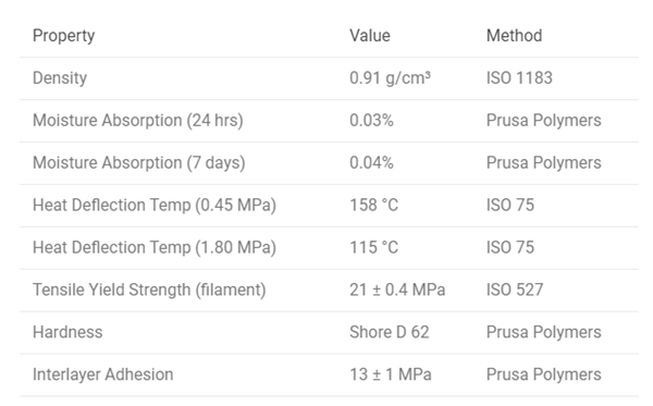 Prusament PP GF材料特性