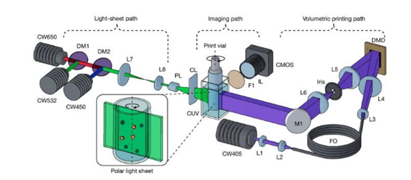 Riccardo Levato是烏得勒支大學(xué)的教授,也是Levato實(shí)驗(yàn)室的負(fù)責(zé)人,該實(shí)驗(yàn)室率先推出了GRACE(生成式、自適應(yīng)式、情境感知式3D打?。┕に嚒K退膱F(tuán)隊(duì)致力于開發(fā)一種更高效、更智能、更可靠的生物打印解決方案。他很快轉(zhuǎn)向了體積打?。翰皇侵饘映练e細(xì)胞,而是一次性固化感光凝膠以創(chuàng)建完整的結(jié)構(gòu)。Riccardo Levato解釋說:“為了構(gòu)建一個(gè)結(jié)構(gòu),我們將一系列光圖案投射到一個(gè)裝有感光凝膠和細(xì)胞的旋轉(zhuǎn)管中。在光束匯聚的地方,材料會(huì)凝固。這使我們能夠一次性創(chuàng)建完整的3D物體,而無需接觸細(xì)胞?!边@個(gè)過程更快,對(duì)細(xì)胞的傷害也更小。