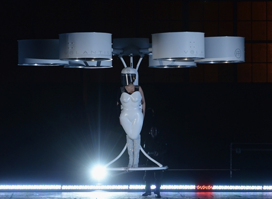其實(shí),謝煒龍還給Lady Gaga設(shè)計(jì)了另外一套衣服。2013年11月10日,Lady Gaga在紐約布魯克林發(fā)布最新專輯《Artpop》,走紅毯穿的長裙外飾(上圖)就出自謝偉龍之手,而發(fā)布會(huì)上那款會(huì)飛的裙子(下圖)也是來自于謝煒龍所在的Studio XO工作室。不論是紅毯長裙,還是這款會(huì)飛的裙子,都是運(yùn)用了3D打印技術(shù)制成。