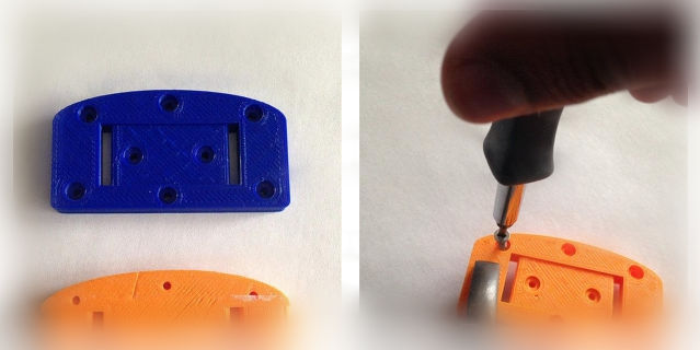 3D打印出來后,再裝上幾根螺釘和一塊魔貼,Carmelito使用的是32x1/2"螺絲釘,這些都很容易在您附近的五金店里買到。擰上螺絲釘,再綁上一根半英寸寬的尼龍帶,兩頭縫上魔貼。即大功告成!