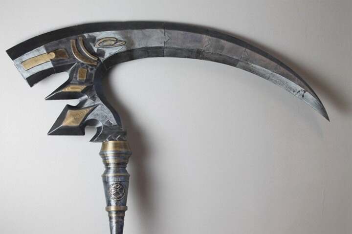 Morata的另一件設(shè)計(jì),這個(gè)巨大的鐮刀來自視頻游戲《刀魂》,是其中的游戲人物Zasalamel的武器。Morata在將其打印出來后還用金屬丙烯顏料噴了漆。這個(gè)大塊頭總共花了Morata 150個(gè)小時(shí)去打印,其外形尺寸足有1040×697×105毫米,耗費(fèi)的線材高達(dá)1638克。