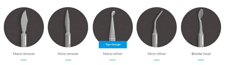 Retouch3D 附帶了以下五個(gè)工具頭:大去除器(Macro Remover)、小去除器(Micro Remover)、大修改器(Macro Refiner)、小修改器(Micro Refiner)、混合頭(Blender Head)。