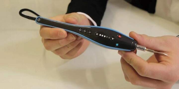 這一裝置的大小為7.03*1.19*1.14英寸,重量?jī)H3.53盎司,任何人都能很舒服地拿著它。它裝有三種預(yù)設(shè)材質(zhì)按鈕,可以設(shè)置為不同的散熱方式,并可手動(dòng)設(shè)定溫度,設(shè)定范圍從50°C直到300°C。