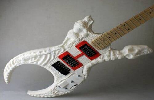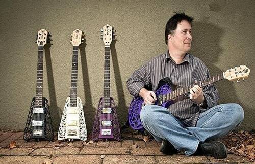 Diegel設(shè)計(jì)打印的樂器包括一把吉他、一把貝斯、一臺(tái)電子琴和一組架子鼓,它們不僅造型獨(dú)特,更讓人驚訝的是,這些樂器的演奏效果也絕不遜于高品質(zhì)的樂器。