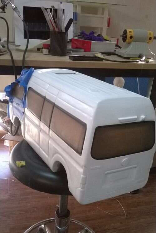 (白色涂刷車身,棕色涂刷出車窗部分)