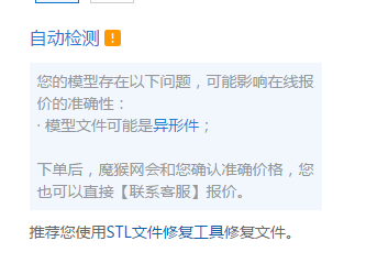 如果您上傳一個(gè)具備特殊件特征的模型,網(wǎng)站給的報(bào)價(jià)很可能是不對(duì)的,會(huì)偏低,這種情況下,客服會(huì)主動(dòng)與您取得聯(lián)系,協(xié)商價(jià)格;