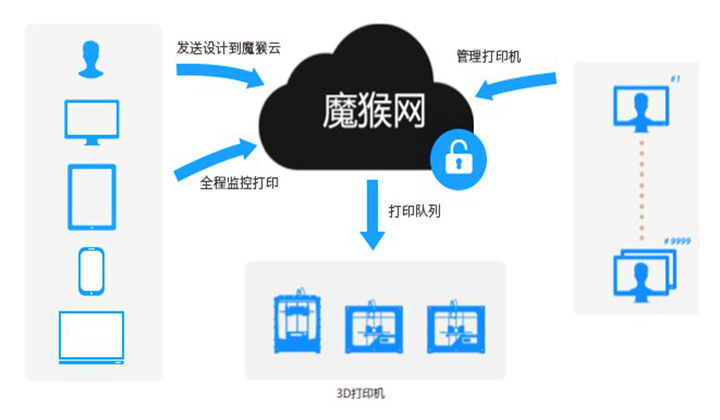 北京易速普瑞作為僅有的參與本次座談會(huì)的3D打印云平臺(tái)企業(yè),其旗下互聯(lián)網(wǎng)產(chǎn)品魔猴網(wǎng)自上線之初就已受到行業(yè)內(nèi)外的廣泛關(guān)注。作為國內(nèi)首家提出3D打印云平臺(tái)概念的企業(yè),魔猴網(wǎng)致力于通過獨(dú)有的云計(jì)算技術(shù),對(duì)有限3D打印資源進(jìn)行調(diào)度與優(yōu)化,解決3D打印使用門檻高,使用率低,生產(chǎn)時(shí)間長且無法監(jiān)控的問題,為更多人提供更好的3D打印服務(wù)。