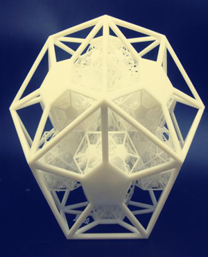 這款產品由無數個菱形組成,一層包著一層,層層相連。底部共有八個支點,八個支點共同組成一個完美的圓形。它用藍色PLA打印成型,再經過后期人員的打磨加工,最終呈現出現在美輪美奐的形狀。
