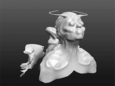 Meyers說,“我用3D掃描儀創(chuàng)建半身像,用建模軟件修飾細(xì)節(jié),刪除不需要的數(shù)據(jù)。當(dāng)我把它放進(jìn)CAD平臺時我還用繪圖軟件添加了絲蟲的形狀,然后將它保存。