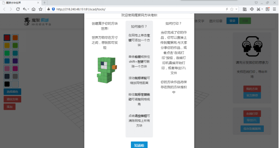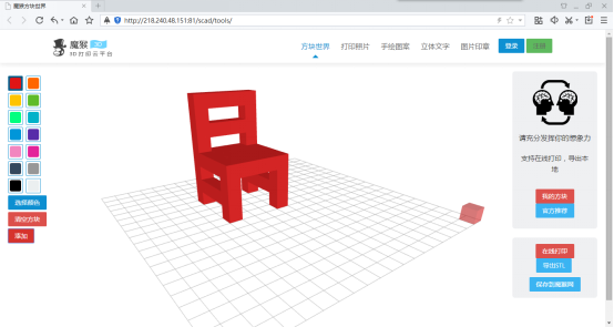 Stratasys通過在Thingiverse中增加3D Slash來完善其3D打印生態(tài)系統(tǒng),用耳熟能詳?shù)摹胺e木”來降低3D建模的難度,使不懂3D建模的普通大眾也能輕松享受到自己建模的樂趣??嘤趪饩W(wǎng)站的限制,我們國內(nèi)有這種需求的用戶當然是不爽的。為此,小編特地找遍了國內(nèi)3D打印圈,終于找到魔猴方塊世界,可以媲美Thingiverse中3D Slash功能很好地滿足大家的需求。