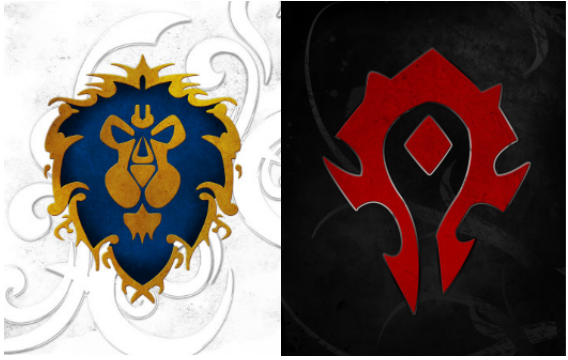 在杯身在貼上部落和聯(lián)盟的旗幟;
