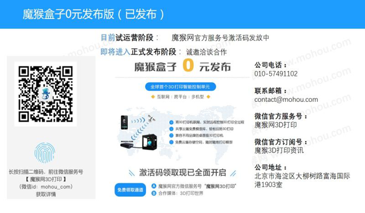 而將整個直播推向高潮的是,張勇博士現(xiàn)場宣布已經(jīng)“免費(fèi)”發(fā)布的魔猴盒子,源代碼即將開放。這一舉措,也證實(shí)了魔猴網(wǎng)“從開始就希望打造一個開放式的在線3D打印系統(tǒng),能夠讓更多的人參與到3D打印過程中”的發(fā)展規(guī)劃。“中國3D打印行業(yè)需要一點(diǎn)新鮮的模式,魔猴網(wǎng)也一直在試圖做新模式的開拓者和創(chuàng)新者”張勇表示。