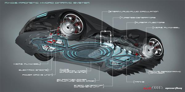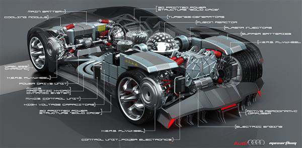 是俄羅斯的汽車設(shè)計師Grigory Gorin設(shè)計的一款核能和3D打印部件相結(jié)合的概念車:奧迪Mesarthim F-Tron Quattro。這輛車的車身底盤是3D打印的輕金屬合金,發(fā)動機(jī)是離子體噴油器聚變反應(yīng)堆。