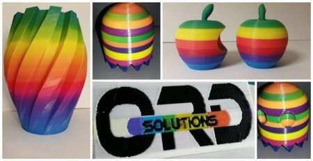 ORD公司稱該打印機(jī)通過清洗容器的不同處來調(diào)節(jié)顏色(就像噴墨打印機(jī)),材料能漸變色也能突然變色,這能讓你在單件打印物上打印任意顏色。除此之外,只要空間足夠大,打印內(nèi)部的填充空間能減少轉(zhuǎn)換時(shí)發(fā)生的浪費(fèi)。