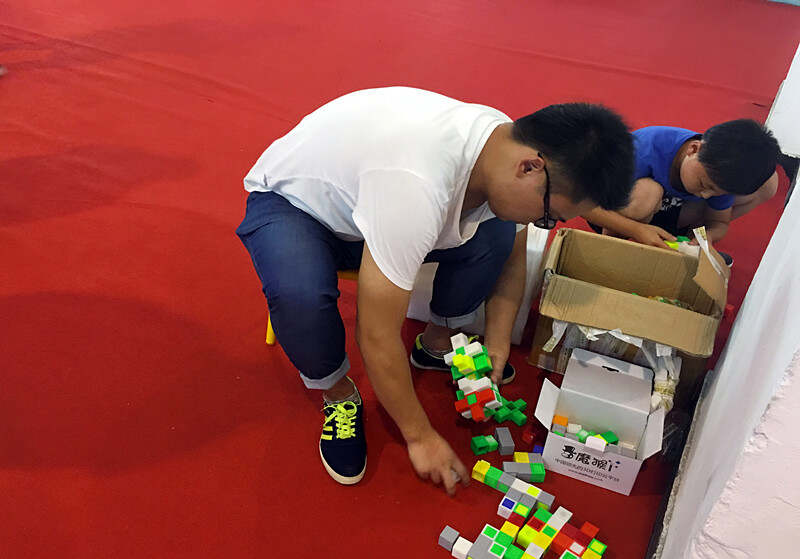 我們備好了顏料、畫筆、手套、臺(tái)布……