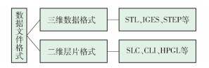 如圖所示,3D 打印中的數(shù)據(jù)文件格式主要分 為 2 類: CAD 三維數(shù)據(jù)文件格式和二維層片文件格 式. CAD 三 維 數(shù) 據(jù) 文 件 格 式 包 括: STL ( stereo lithography)  、 STEP ( standard for the exchange of product modal data )  、 IGES ( initial graphics exchange specification )  、 LEAF ( layer exchange ASCII format )  、 RPI ( rapid prototyping interface) 、LMI( layer manufacturing interface)  等;二維層片文件格式包括:SLC( stereo lithography contour) 、CLI( common layer interface)  、HPGL (Hewlett-Packard graphics language) 等. 其中 STL 是最早用于 CAD 與 CAPP 間數(shù)據(jù)交換的文件格式, 并且得到了廣泛的應(yīng)用. 目前,3D 打印系統(tǒng)大部分 都是基于 STL 格式設(shè)計的。