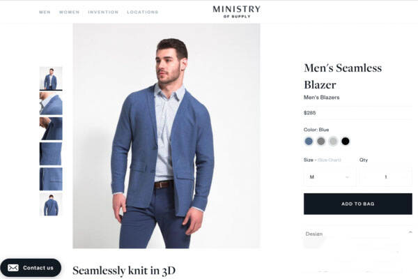 美國(guó)男士服裝初創(chuàng)品牌Ministry of Supply緊跟按需服務(wù)的趨勢(shì),于近期在波士頓旗艦店推出 3D打印服務(wù) 3D Print Knit Blazer。