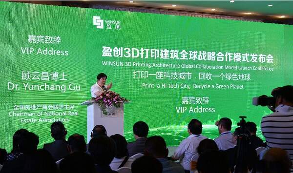 國內(nèi)知名3D打印企業(yè)盈創(chuàng)建筑科技(上海)有限公司在其蘇州工廠舉辦“盈創(chuàng)3D打印建筑全球戰(zhàn)略合作模式”新聞發(fā)布會,探索“全球化”的戰(zhàn)略發(fā)展模式。