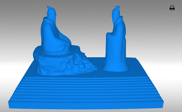 我們看一下魯迅美術(shù)學(xué)院一位老師的藝術(shù)作品。這個(gè)雕塑模型寬度1.5米左右,掃描時(shí)間半天(上門掃描),數(shù)據(jù)處理用時(shí)半天,一天就出了數(shù)字模型,掃描加3D打印的時(shí)間一共只有3天,掃描費(fèi)用1500元,打印的費(fèi)用2300元。