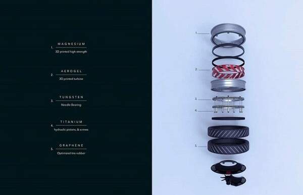 據(jù)悉,這款車是為了參加著名的法國勒芒勒芒24小時耐力賽設(shè)計的,不但非常炫酷,而且采用了許多黑科技,比如:車輪根據(jù)Gorlov風(fēng)力渦輪機原理設(shè)計,可以從各個角度吸收空氣。每個車輪都裝有一個渦輪,可以將空氣吸進來,再壓入車后部的中央渦輪。之后,中央渦輪便會將氣流匯聚到一起,與傳統(tǒng)電力傳動系統(tǒng)結(jié)合在一起,讓汽車獲得超高的加速度。