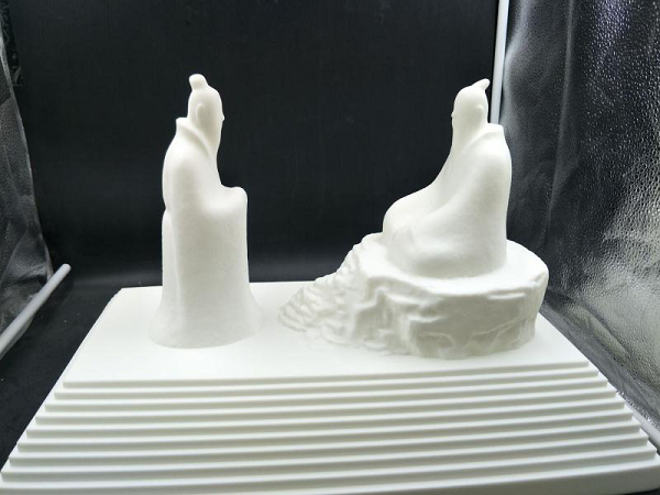 對(duì)于小型雕塑,直接用3D打印來制作成品雕塑也是一個(gè)方向。隨著3D打印行業(yè)的不斷發(fā)展,3D打印的費(fèi)用不斷降低,后處理工藝不斷成熟,使得直接3D打印雕塑成為可能。目前,用比較成熟的3D打印工藝(SLA技術(shù)和FDM技術(shù))來制作雕塑,費(fèi)用已經(jīng)比實(shí)際比手工雕刻來的更低,如下圖所示30cm人物雕塑,保證造型精準(zhǔn)的前提下,單個(gè)的人物的總制作費(fèi)用在1000元以內(nèi),其中3D打印費(fèi)用約為400元,而傳統(tǒng)手工制作需2000元左右,時(shí)間還更要長一倍作用,精度還難以保證,優(yōu)劣立現(xiàn)。即使大型的雕塑,如魔猴網(wǎng)制作的2米高大金人,從打印到成品費(fèi)用在數(shù)萬元,不比傳統(tǒng)方法貴,但時(shí)間周期至少減少一半,而且質(zhì)量較輕,適合運(yùn)輸,特別適合展會(huì)等需要移動(dòng)的場景。