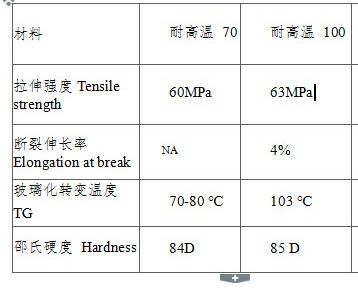 一般3D打印的樹脂耐溫性能在40-50之間,大廠stratasys的所謂耐高溫樹脂不超過60度,現(xiàn)在魔猴網(wǎng)推出三款耐高溫樹脂,可以耐受70-80. 100,280度的耐高溫樹脂,可以很好解決一些對(duì)應(yīng)用環(huán)境溫度有要求的客戶,樹脂本身打印性能和普通光敏樹脂類似,精度0.1mm, 壁厚要求大于0.8mm。 具體物理性能表如下:
