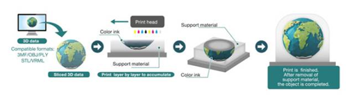 這款設(shè)備的推出主要針對市場上色彩和去支撐兩大痛點。色彩方面,通常市面上的3D打印設(shè)備難以以逼真的色彩生產(chǎn)產(chǎn)品。通常要求打印完成后通過手繪或噴涂的過程,這是耗時而昂貴的。再者,大多數(shù)3D打印對象在打印完成后都需要去除穩(wěn)定的支撐結(jié)構(gòu)。這是需要時間且?guī)盹L險的。