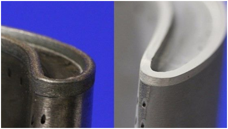 在過去,這樣對(duì)于葉片的修改是不可能的。而混合增材制造設(shè)備上的3D打印和銑削加工的配合帶來了小量修改的可行性與經(jīng)濟(jì)性。當(dāng)這些葉片被完全修復(fù)后,它們被賦予了新的性能,從而有力地提升渦輪的整體性能。