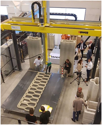據(jù)悉,這座橋梁由荷蘭埃因霍溫理工大學(TU/e)與荷蘭建筑集團BAM Infrastructure合作,3D打印一座混凝土自行車橋。于今年6月動工,工期約3個月由高強度、預力混凝土建成。它位于緊鄰埃因霍溫的Gemert鎮(zhèn),長8米,寬3.5米,將先打印出各組件運到目的地組裝的方式完成。10月17日荷蘭官員為這座混凝土3D打印橋梁建成通車舉行了慶祝儀式。