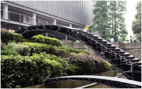 同樣在今年,上海同濟大學校門口建起了兩座3D打印的人行天橋。3D打印人行天橋在國內(nèi)尚屬首次,目前兩座天橋都僅作展示用,不做承重測試也不允許行人通過。據(jù)了解,這兩座橋由同濟大學建筑與城市規(guī)劃學院打造,長度分別為4米和11米,用以展示和探索未來的建筑技術(shù)與城市規(guī)劃。