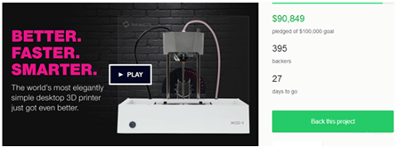 2017年10月21日,小有名氣的美國(guó)桌面級(jí)3D打印機(jī)制造商N(yùn)ew Matter近日在知名眾籌平臺(tái)Kickstarter上推出了其第二代MOD-t桌面級(jí)3D打印機(jī)。這款機(jī)器最大的亮點(diǎn)就是便宜。最低的超級(jí)早鳥價(jià)僅為149美元(約人民幣已被搶光),普通價(jià)也不過249美元。所以,在目前距離活動(dòng)截止還有27天的情況下,它已經(jīng)籌得了超過9萬(wàn)美元。