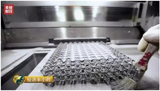目前,在我國很多飛機、船舶甚至航天器的重要零部件上,都可以見到金屬3D打印的身影。無論是飛機、船舶的發(fā)動機、零部件,還是運載火箭、空間航天飛行器、無人機等航空航天設(shè)備,金屬3D打印部件正在悄悄地取代著傳統(tǒng)制造的零件,并給航空航天等高端制造提供了更多的可能。航天器上很多大大小小的零件,都可以用這種結(jié)構(gòu)來替代原有的較為笨重的金屬。甚至一根頭發(fā)絲,就可以吊起來一個體積不小的衛(wèi)星上的小零件。