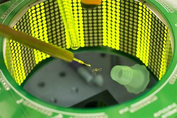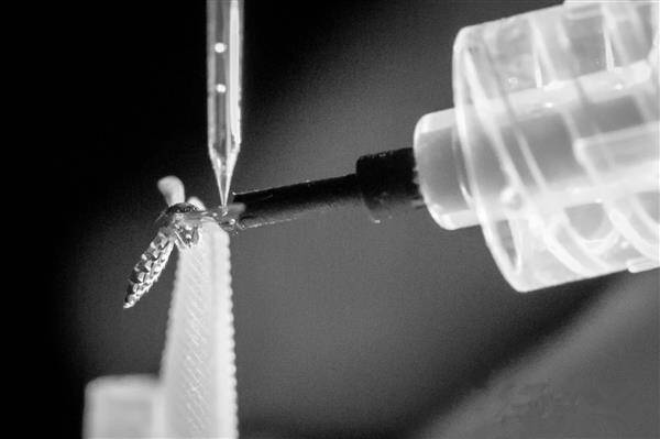 在另一個(gè)實(shí)驗(yàn)中,研究人員使用特殊的3D打印的舞臺(tái)來(lái)記錄蚊子的大腦活動(dòng),同時(shí)他們正在飛行,以了解蚊子腦中的多巴胺如何有助于其學(xué)習(xí)能力。