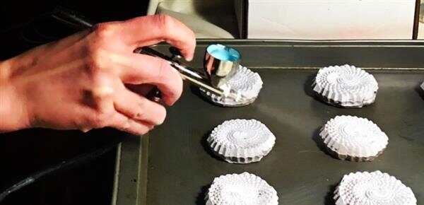 這些蛋糕設(shè)計(jì)靈感來自于貝殼復(fù)雜結(jié)構(gòu),Keefe生活在加勒比海地區(qū)時通過各種CAD軟件程序終于讓這些設(shè)計(jì)浮出水面。通過“將模型從程序轉(zhuǎn)移到程序,”Keefe解釋說,蛋糕形式的完善已經(jīng)實(shí)現(xiàn)。一旦甜點(diǎn)在硅膠模具中凝固,天才的Techno Test Kitchen團(tuán)隊(duì)就可以手動噴灑每種糖果。結(jié)果,正如你在照片中看到的,是一系列充滿活力,色彩鮮艷,美觀的糕點(diǎn)。