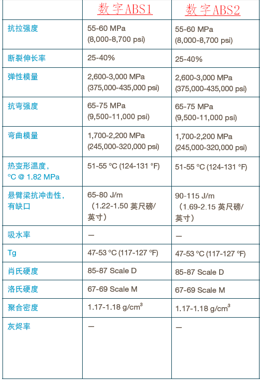 數(shù)字 ABS(由 RGD515 RGD535 3D 打印機(jī)中制成)將耐高溫與高韌性的特性相結(jié)合,旨在模擬標(biāo)準(zhǔn) ABS 塑料。數(shù)字 ABS2 具有工程塑料特性,并且在厚度不到 1.2 mm (0.047 in.) 的壁中剛度和韌性均表現(xiàn)出色。兩種材料適用于需要 PolyJet 技術(shù)的抗高強(qiáng)度沖擊和減震的部件。